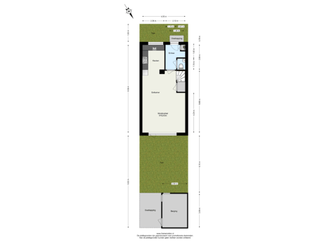 - 26 m² (9,82 meter diep en 2,64 meter breed)