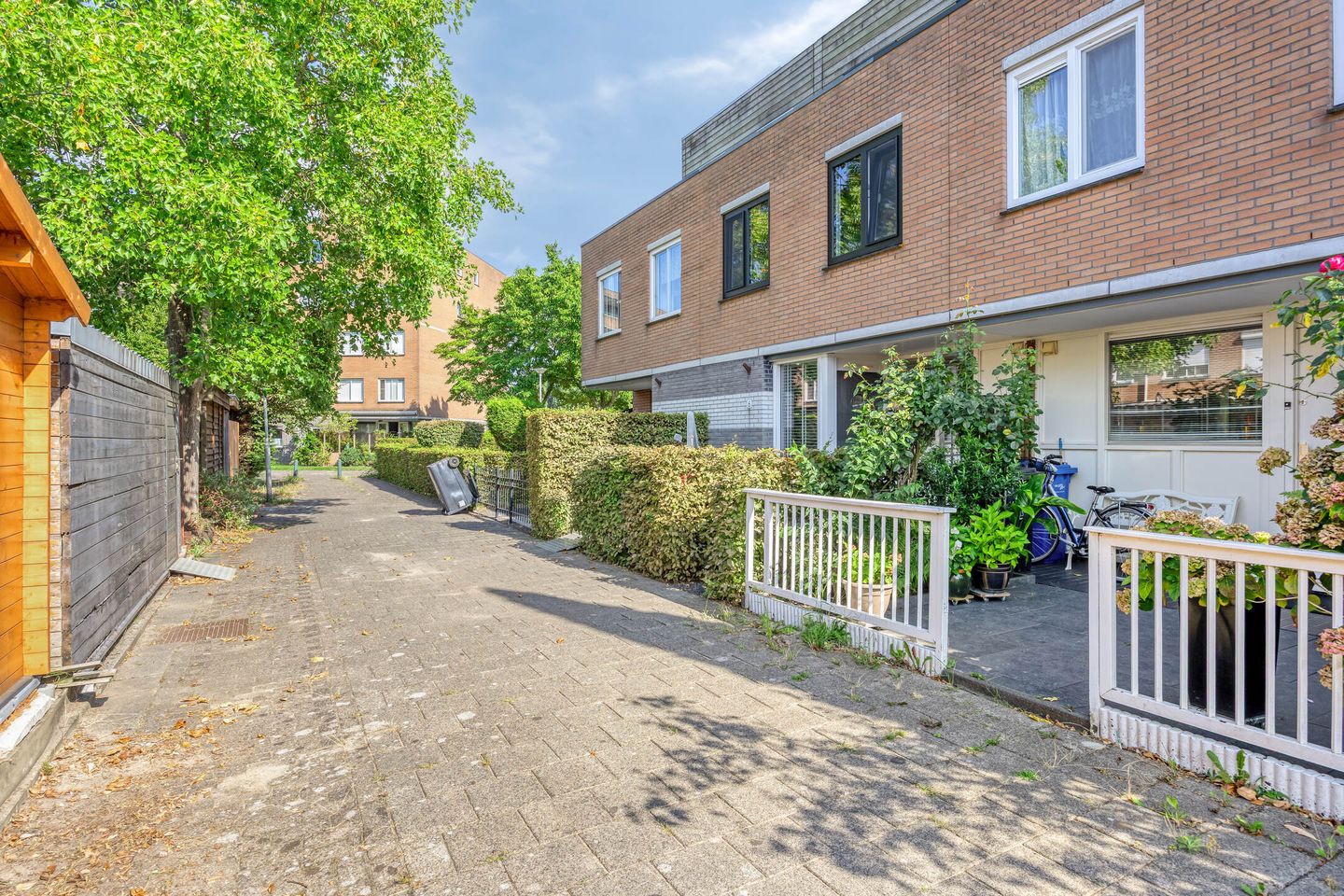 Het voelt gewoon een beetje als vakantie in deze mooie en doordacht aangelegde tuin. Er is een goede indeling gemaakt waarbij er een fijne plek is om lekker te eten, een plek om te chillen en een plekje om de BBQ op te stoken. Aan de achterzijde een grote schuur voor de fietsen en je tuingereedschap en via de achterdeur in de schuur sta je achter op het speelpleintje, ideaal voor de kids.