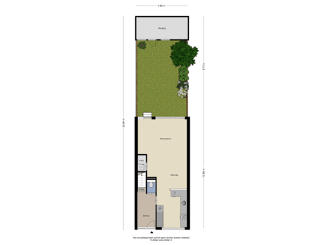 - 45 m² (9,60 meter diep en 4,70 meter breed)