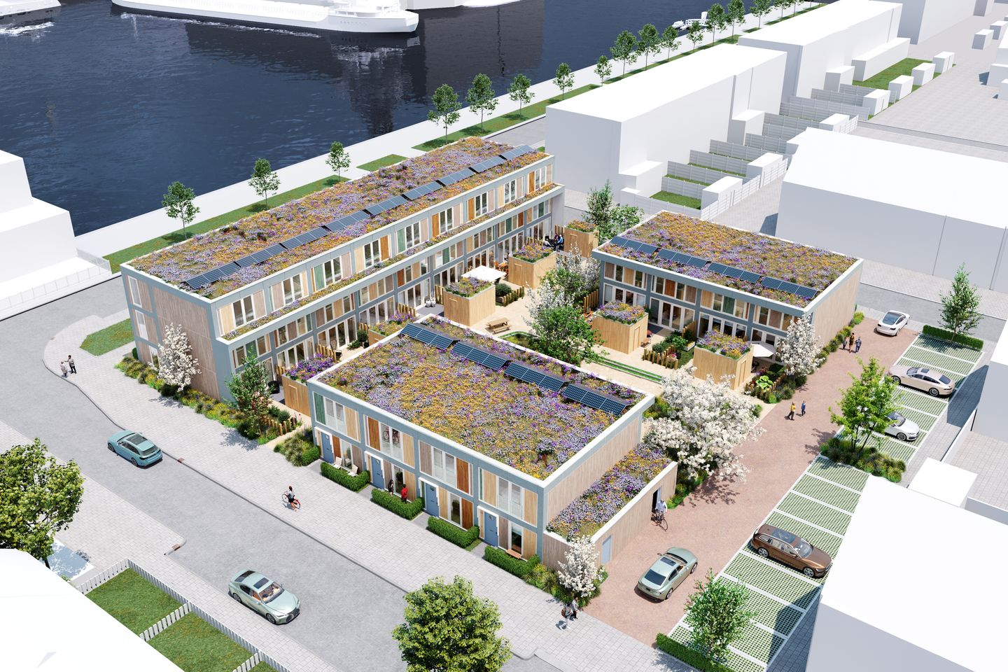 Wonen met uitzicht op de stoere haven én de rustgevende gemeenschappelijke tuin? Kies dan voor de hoekwoning aan de Heysekade. Deze charmante houten woning met drie woonlagen bieden verrassend veel ruimte, met een beukmaat van 4.200 mm, vier slaapkamers en een praktische berging van 5 m².