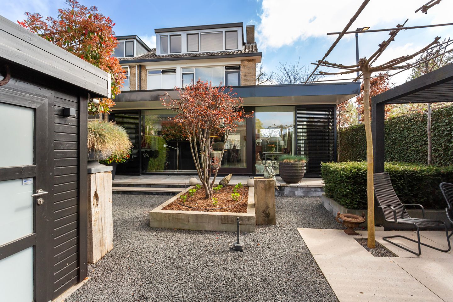 prachtig aangelegde achtertuin gelegen op het Noordwesten met middag- en avondzon. De zij/ achtertuin genieten veel privacy. Er is een houten schuur aanwezig en een achterom. De ruime voortuin biedt ook voldoende plek voor een zitje en heeft een eigen oprit met laadpaal.