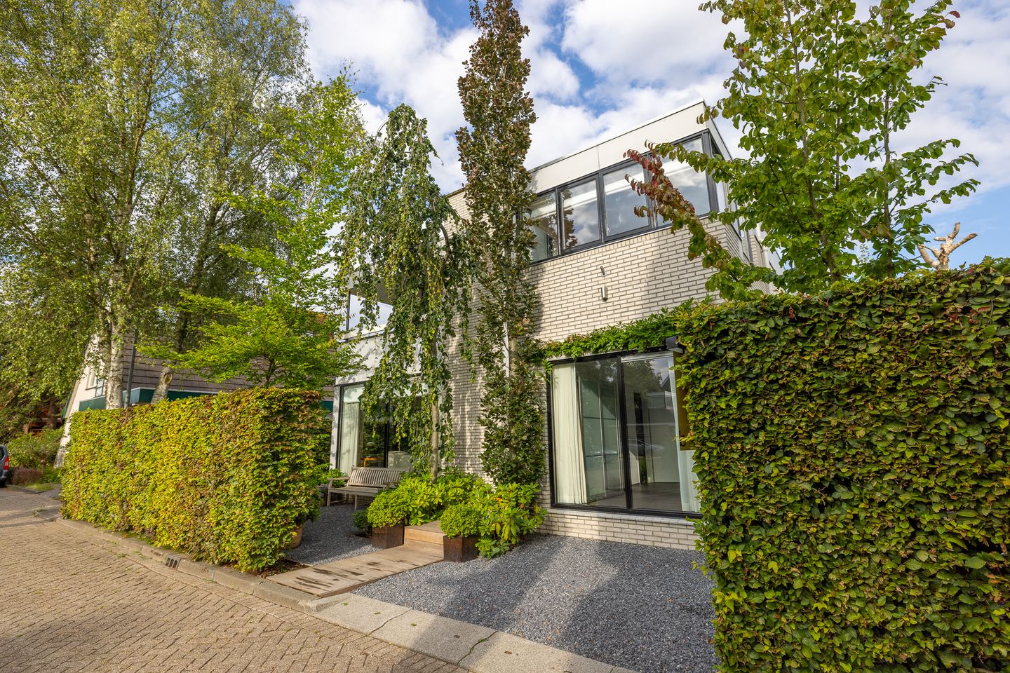 Via de diepe, zonnige voortuin is de toegang naar de woning.