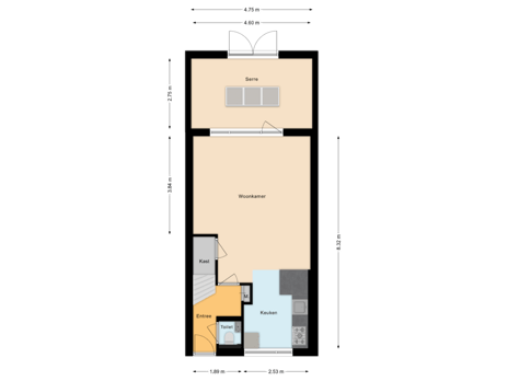 - 62 m² (7,50 meter diep en 8,20 meter breed)