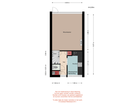 * Keukenruimte aan de voorzijde voorzien van laminaatvloer en inbouwkeuken met apparatuur: elektrische kookplaat, magnetron, oven, afzuigkap, vaatwasmachine (ter overname) en de wasmachine-aansluiting.