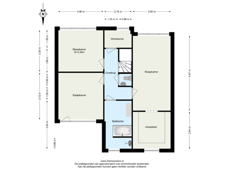 Overloop met de toegang tot de slaapkamers, kantoor en de badkamer.