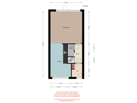 - 64 m² (12,92 meter diep en 4,95 meter breed)