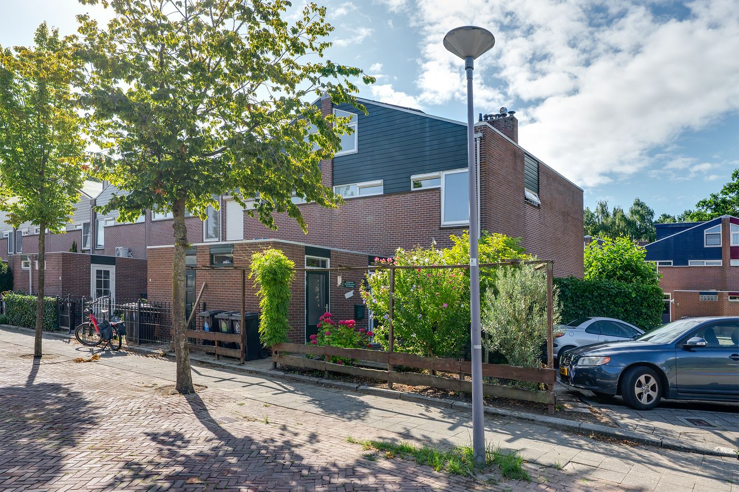 De voortuin is fraai aangelegd, biedt extra privacy en is tevens bereikbaar via openslaande deuren in de keuken. De zijtuin heeft een eenvoudige overkapping en biedt zo extra bergruimte voor diverse tuinspullen en fietsen. De diepe achtertuin op het zuiden is fraai aangelegd met sierbestrating en beplanting en biedt dankzij de hoekligging veel privacy. De tuin heeft een grote elektrische zonnescherm, een buitenkraan en is tevens via de zijkant bereikbaar.