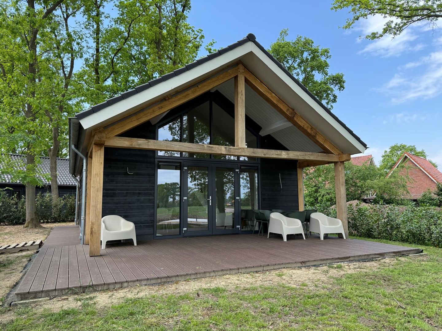 Bent u op zoek naar een duurzame, comfortabele, vrijstaande recreatiewoning op eigen grond in een rustige, bosrijke omgeving? Dan graag even uw aandacht voor deze prachtige nieuw gebouwde woning.