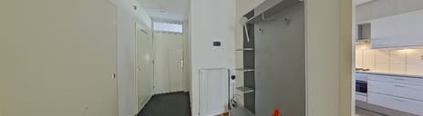 Je komt binnen in een ruime hal met garderobe, meterkast en een aparte kast met de cv-installatie. Vanuit hier stap je de centrale gang in, die toegang geeft tot de rest van het appartement.