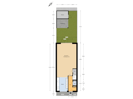 - 44 m² (8,47 meter diep en 5,20 meter breed)
