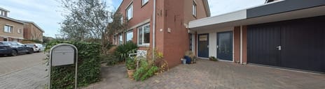 Via de voortuin (met opstelplaats voor de vuilcontainers) bereikt u de entree van de woning.