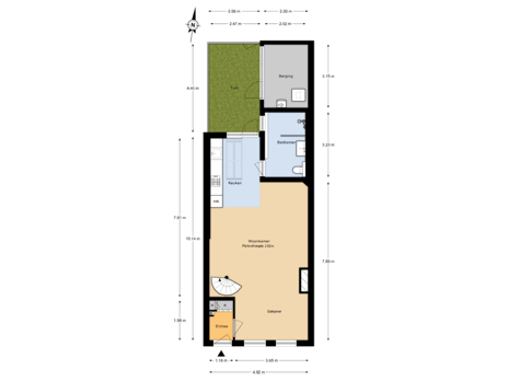 - 11 m² (4,40 meter diep en 2,47 meter breed)