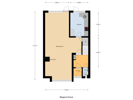 - 64 m² (10,00 meter diep en 6,42 meter breed)