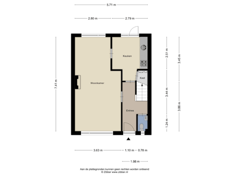 Wanneer we de woning binnenstappen, komen we in de entree en hal, waar zich het toilet en een praktische provisiekast met de meterkast bevinden. Vanuit de hal lopen we door naar de halfopen keuken, die bovendien beschikt over een eigen achteringang.