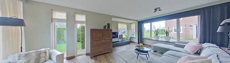 De erker in de woonkamer geeft niet alleen extra ruimte, maar vooral veel licht en nét dat beetje extra body. Een royale hoekbank? Die voelt zich hier meteen thuis. Zodra de zomer zich aandient, zet je de openslaande tuindeuren wagenwijd open en loopt binnen moeiteloos over in buiten. En wil je juist even wat meer rust of gezelligheid? Dan sluiten de ensuite deuren de woonkamer eenvoudig af van de keuken.