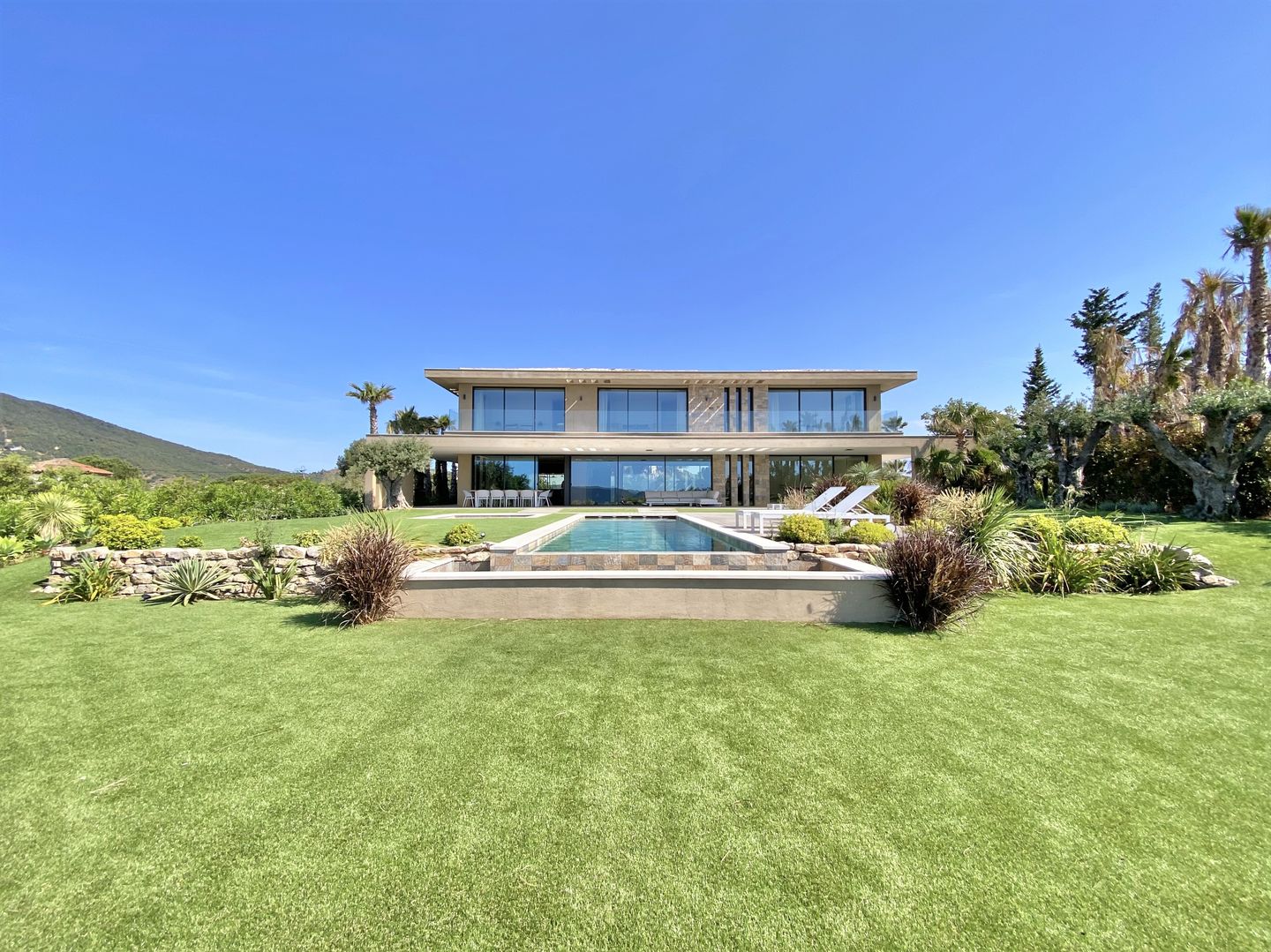 Dop Makelaars biedt aan: Luxueuze nieuwe villa met zeezicht die rustig is gelegen in La Croisette. Deze waanzinnige, luxe villa met dubbel zeezicht is rustig gelegen in La Croisette te Sainte Maxime, dichtbij de stranden en winkels. De villa is zuidelijk georiënteerd en biedt een panoramisch zeezicht over de baai van Saint-Tropez en de stad Sainte-Maxime. Een architectonisch meesterwerk met één van de mooiste zeezichten in de Golf van Saint-Tropez.