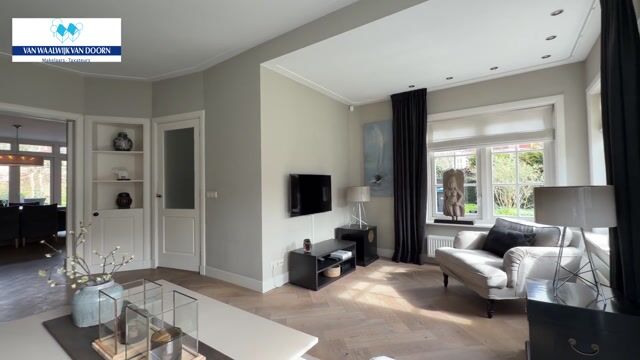 Parterre: entree; hal; moderne meterkast; vergroot toilet met fontein; kelderkast; riante kamer-en-suite met 2 openhaarden voorzien van stijlvolle schouwen en fraaie eikenhouten vloer; luxe, uitgebouwde woonkeuken met vloerverwarming, ingebouwde kastenwanden, kookeiland, Quooker, wijnkast, ingebouwd koffie-apparaat, 6-pits gaskookplaat, geïntegreerde afzuiging, combimagnetron, oven, warmhoudlade, vaatwasser en Amerikaanse koel/vriescombinatie; openslaande deuren naar de achtertuin.