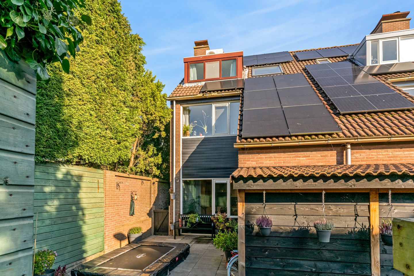Na de voordeur, die bereikbaar is door een mooi aangelegde tuin (2021) met trampoline en fietsenberging, ligt een ruime hal. Er wordt direct duidelijk dat alles tot in de puntjes verzorgd en onderhouden is. Aan de hal ligt een keurig toilet met fonteintje (2024), een garderobe, meterkast (2021) en een nieuwe trap naar de eerste etage. Vanuit de woonkamer biedt de grote achterpui een fraaie aanblik op de tuin. De tuingerichte woonkamer is een lichte ruimte met een moderne vloer met vloerverwarming en een prachtig maatwerk meubel. De halfopen keuken (2021) met diverse inbouwapparatuur zoals een vaatwasser, koelkast, vriezer, boiler, bakoven en een inductiekookplaat, heeft een gezellige verbinding met de eettafel. Onder de trap naar de eerste etage is een praktische trapkast gesitueerd. De diepe achtertuin heeft een vrije ligging met veel zon waar veel mogelijkheden zijn om een plek in de zon óf de schaduw op te zoeken. Er is een aangename veranda, een prachtig aangelegd terras, een achterom én toegang langs de zijkant en een grote schuur. Bovendien is ook de achtertuin in 2021 volledig opnieuw aangelegd, net als de voortuin.