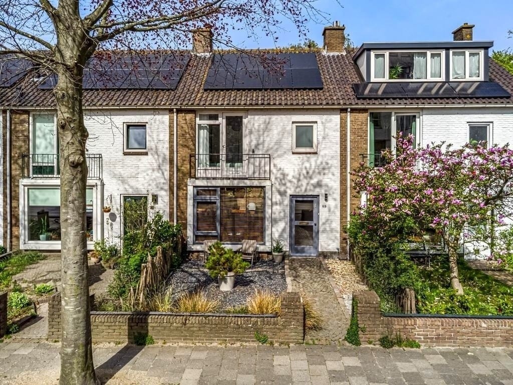 Nummer 93 is onderdeel van een huizenrij met frisse witte gevels en Franse balkons. De groene voortuinen vormen een mooie, natuurlijke scheiding tussen het trottoir en de aangename rust in de woonkamer. Want dit lichte huis voelt absoluut fijn en behaaglijk. Het start al in het voorportaal met ruimte voor een garderobe en de meterkast, waarna de centrale hal, met originele marmeren plavuizen, volgt met een toilet, de trapopgang naar boven en een praktische trapkast. Hier is ook de toegang tot de gezellige woonkamer met grote ramen en de moderne, open keuken met diverse inbouwapparatuur waaronder een vaatwasser, inductiekookplaat, koelvriescombinatie en een bakoven. Bij de schuifpui naar de zonnige achtertuin is ruimte voor een grote eettafel, terwijl de zithoek ingericht kan worden aan de voorzijde met zicht op de voortuin.