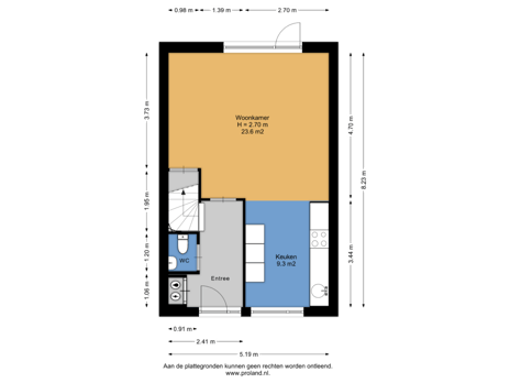 - 35 m² (7,00 meter diep en 5,00 meter breed)