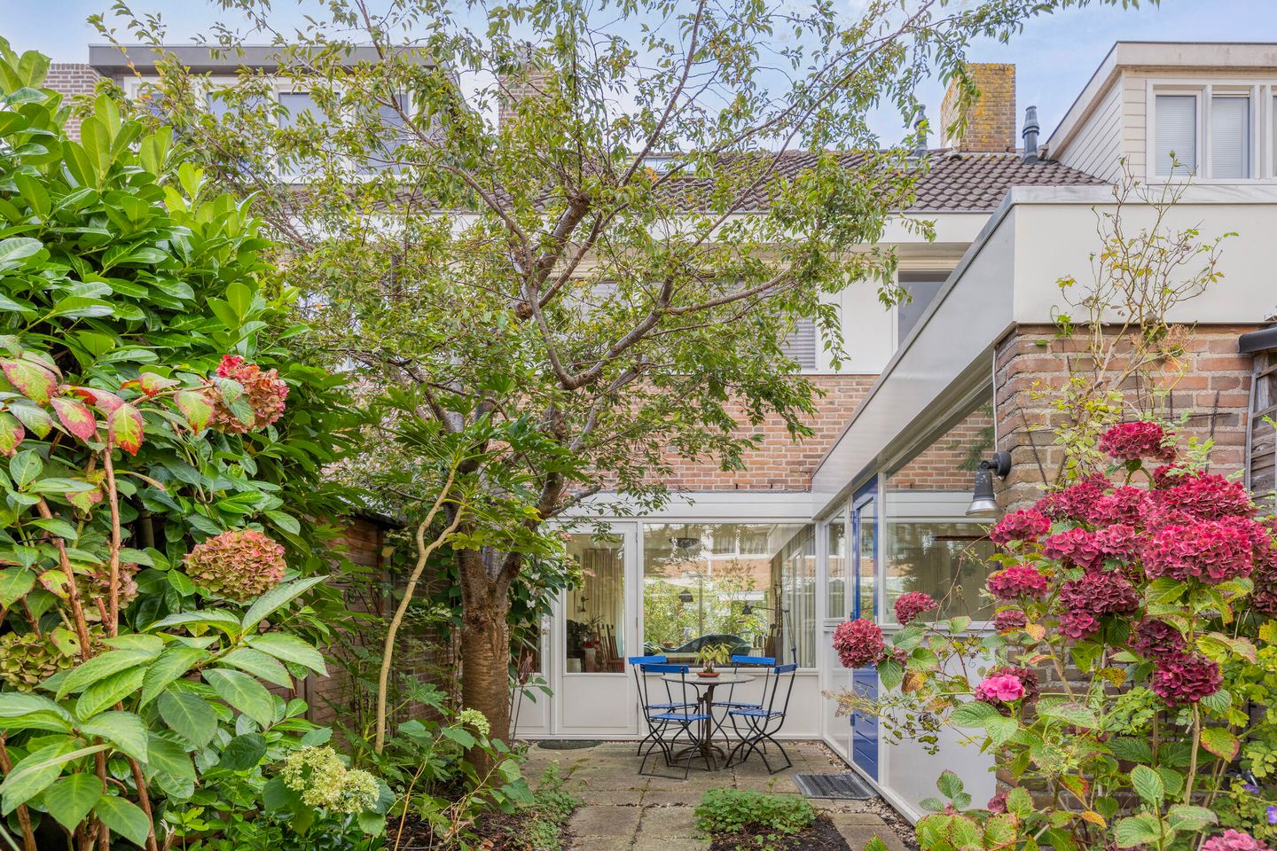 De tuin biedt zon- en schaduwplekken dankzij de dubbele ligging: een oostelijk gerichte achtertuin en een voortuin die heerlijk op het westen ligt. Of het nu een vroege koffiemoment in de ochtendzon is of heerlijk borrelen in de avondzon, deze tuin maakt je dag nét wat mooier. Groengevoel en privacy gaan hier hand in hand. Er is ruimte genoeg voor een speeltoestel, een flinke eettafel of misschien wel je groene vingers om los te laten op een moestuintje.