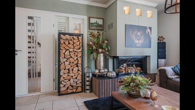 Bij binnenkomst wordt u verwelkomd in de royale entree met garderobe en een modern toilet. Een stijlvolle glazen pui geeft toegang tot de ruime woonkamer, waar diverse indelingsmogelijkheden zijn voor zithoek (met haard) en eetgedeelte. Dankzij de grote raampartijen geniet u hier van veel lichtinval en zicht op de fraai aangelegde tuin.