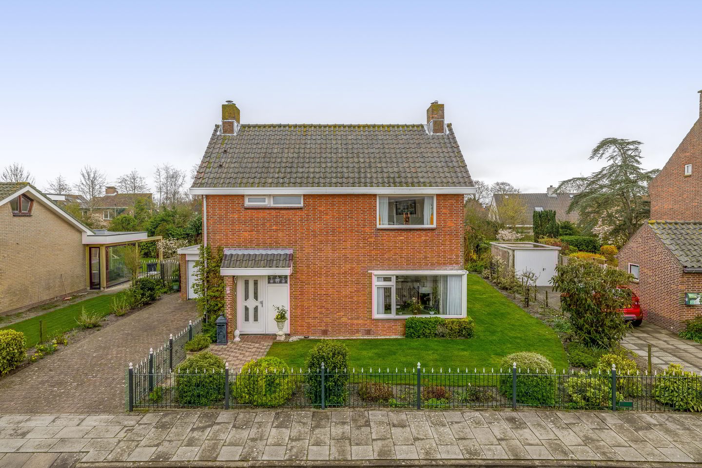 De ruime oprit zorgt voor voldoende parkeergelegenheid op eigen terrein. Daarnaast beschikt de woning over een aangebouwde stenen garage met een geïsoleerde elektrische segmentdeur en voorzieningen zoals elektra en water – ideaal voor hobbyisten of het veilig stallen van uw auto.