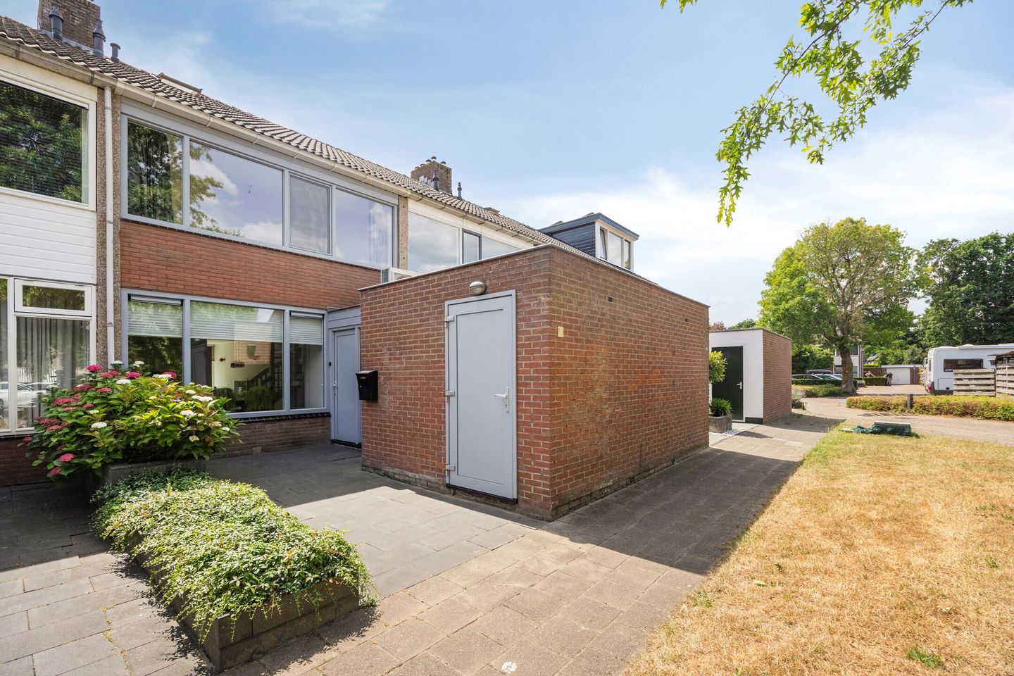 De tuin op het zuiden is keurig en makkelijk bij te houden en ook via een achterom bereikbaar.
