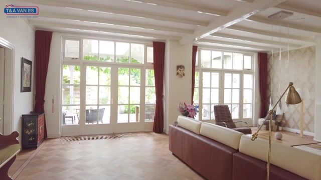 Wij nemen u graag mee door de woning: Via de entree komt u in de hal met de trapopgang en trapkast. Gaat u naar rechts dan komt u in de kamer die thans bekend staat als de bibliotheek. Loopt u iets verder door onder de toog, dan komt u in het deel van de kamer dat thans als werkkamer is ingericht, met daarachter een toilet. Aan de achterzijde treft u de royale woonkamer met houthaard aan. De woonkamer biedt een heerlijk uitzicht over de tuin.