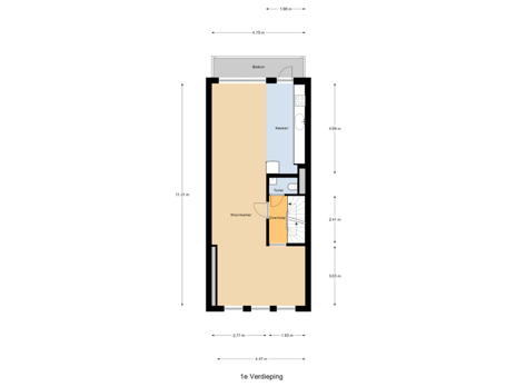 Zie woningplattegrond. Bijgevoegde tekening dient uitsluitend ter indicatie. Er kunnen geen rechten aan worden ontleend.