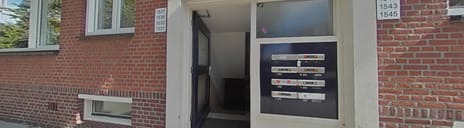 Afgesloten entree met bellentableau, intercom en brievenbussen. Trap naar kelder en woonlagen.