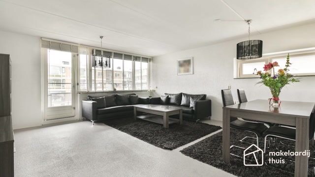 We lopen door naar de woonkamer. Deze is ruim en heeft veel lichtinval mede door het zijraam. Via de woonkamer heb je toegang tot het zonnige balkon. Hier is genoeg plaats voor een gezellige opstelling dus genieten maar!