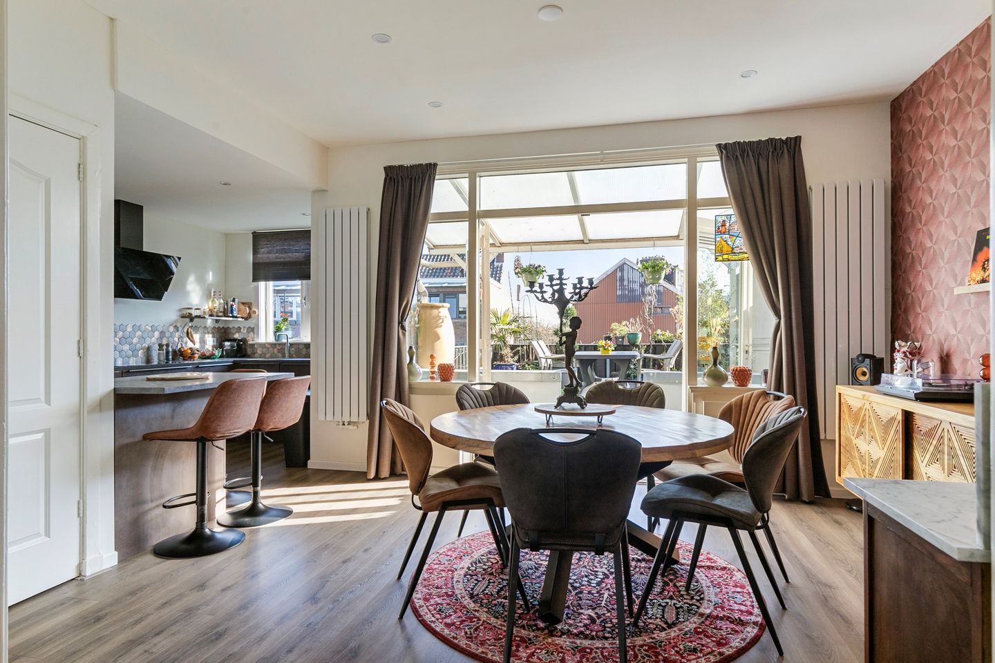 Vanuit de eetkamer is er middels openslaande deuren toegang tot het royale dakterras met genoeg ruimte voor een gezellig zitje. In de zomermaanden is dit balkon echt een verlengstuk van het huis.