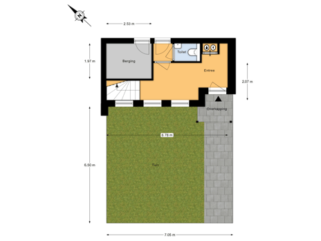 - 46 m² (65,00 meter diep en 70,54 meter breed)