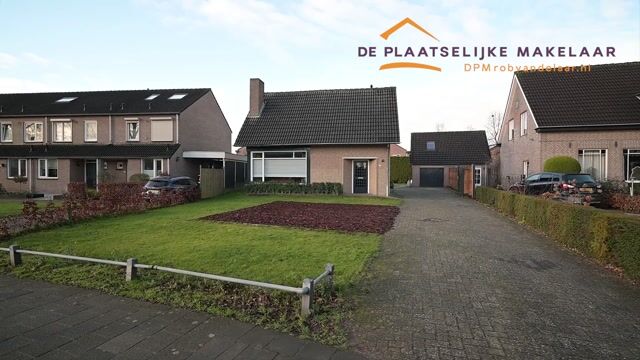 Buiten is er een overkapping aan de woning bevestigd, ideaal voor het creëren van een gezellige buitenruimte. De lange oprit biedt voldoende parkeergelegenheid voor meerdere voertuigen en leidt naar het ruime gazon, dat als voortuin fungeert.