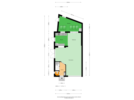 - 64 m² (18,40 meter diep en 3,50 meter breed)