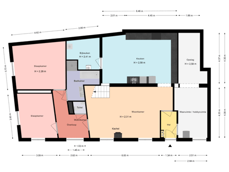 - Slaapkamer 6: 2.65*2.58m voorzien van laminaat