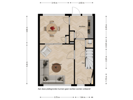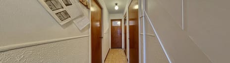Via de voordeur betreed je de woning en kom je binnen in de hal. Hier bevinden zich het toilet, een handige trapkast, de trap naar de eerste verdieping en de deuren naar zowel de woonkamer als de keuken.