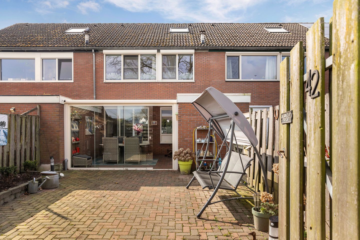 Tuin: sfeervol aangelegde tuin met openbare parkeergelegenheid direct achter het huis, veel privacy en een fijn overdekt terras c.q. tuinkamer met hardglazen schuifdeuren. De tuin is onderhoudsvriendelijk aangelegd en aan de voorzijde is er openbare parkeergelegenheid, een verkeersluw hofje met groenstrook en een kleine speeltuin.