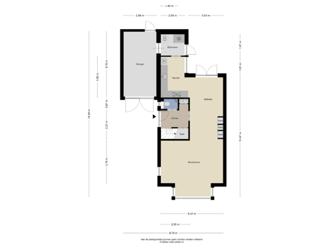 Begane grond: entree/hal met garderobehoek en toilet, de lichte L-vormige woonkamer heeft een erker, tuindeuren en staat in open verbinding met de halfopen keuken, die is voorzien van inbouwapparatuur (afzuigkap, gaskookplaat, combi-oven, koelkast en vaatwasser), vanuit de keuken is de bijkeuken bereikbaar, met buitendeur, witgoedaansluitingen en doorgang naar de garage.