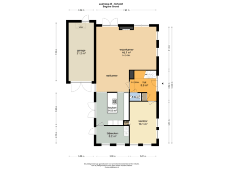 De woning beschikt over een garage (ca. 21 m²) met openslaande deuren, voorzien van elektra. Boven de garage is een handige vliering van 19 m² (hoogte ca. 2 meter) die ideaal is voor extra opslag.