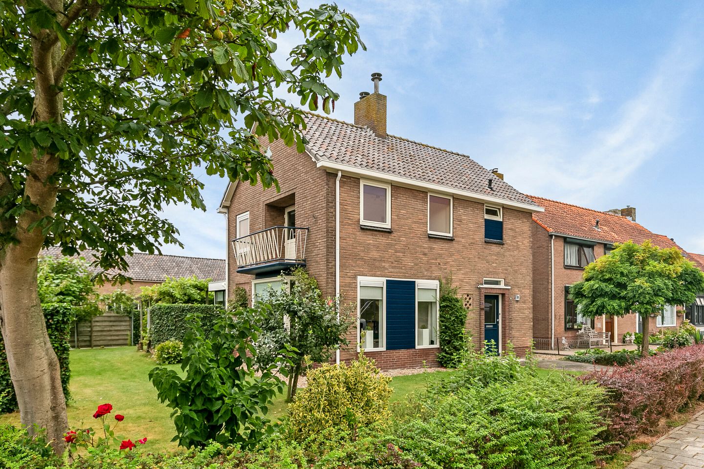 De woning wordt omgeven door een fraai aangelegde en goed onderhouden tuin met veel groen, een ruim terras en een keurig gazon. Dit is een ideale plek om te ontspannen en te genieten van de buitenlucht.