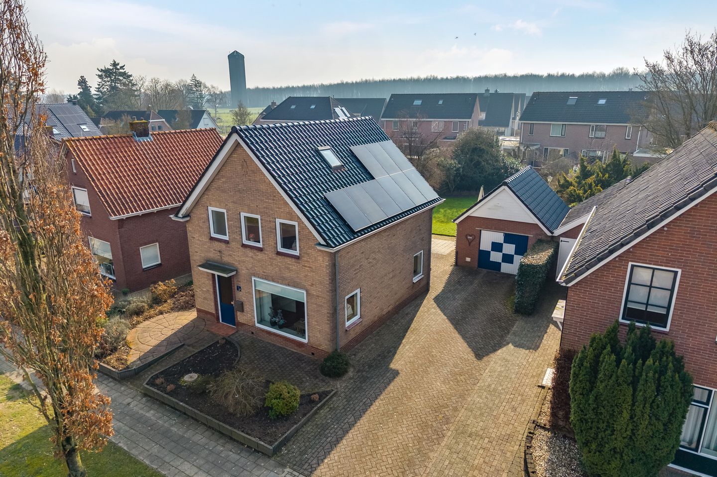 Op het perceel bevindt zich daarnaast een vrijstaande stenen garage met bergzolder. Deze ruimte is geschikt voor het stallen van een auto, fietsen of het inrichten als hobbyruimte en biedt extra opbergmogelijkheden. Op de oprit is voldoende plek om meerdere auto’s op eigen terrein te parkeren.