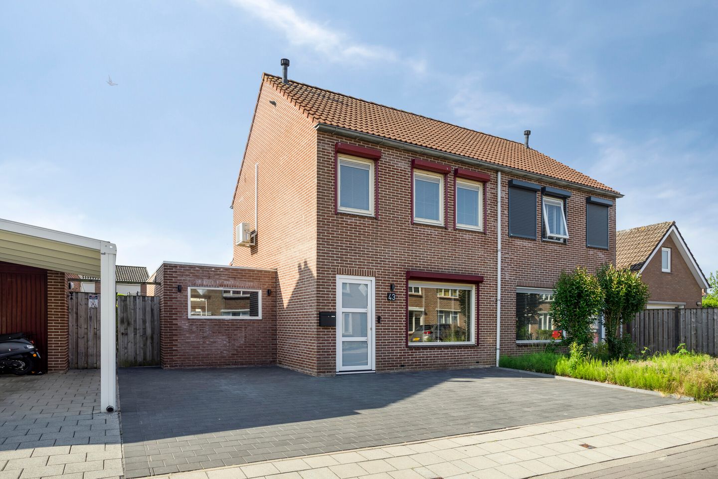 - Deels kunststof en deels hardhouten kozijnen met dubbel glas en rolluiken