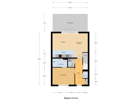 - 64 m² (9,30 meter diep en 6,90 meter breed)