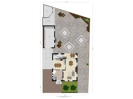 De tuin is een echt verlengstuk van de woning. Een echte oase met meerdere terrassen, waaronder een royale overkapping waar je het hele jaar door heerlijk zit. Dankzij de ligging op het noordoosten geniet je tot in de avond van de zon. Verder vind je er een vrijstaande garage met ruimte voor auto, fietsen en gereedschap, volop privacy en een fijne, rustige sfeer door weinig verkeer in de straat.