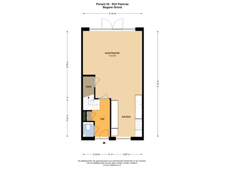 - 61 m² (12,00 meter diep en 5,10 meter breed)