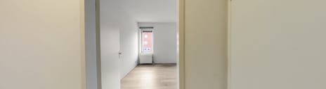 Of u nu met de trap of lift naar boven bent gegaan, de voordeur van dit gelijkvloerse appartement is binnen handbereik. In de ruime hal zijn de meterkast en de toiletruimte met fonteintje. De mooie laminaatvloer ligt niet alleen in de hal, maar in bijna het hele appartement.