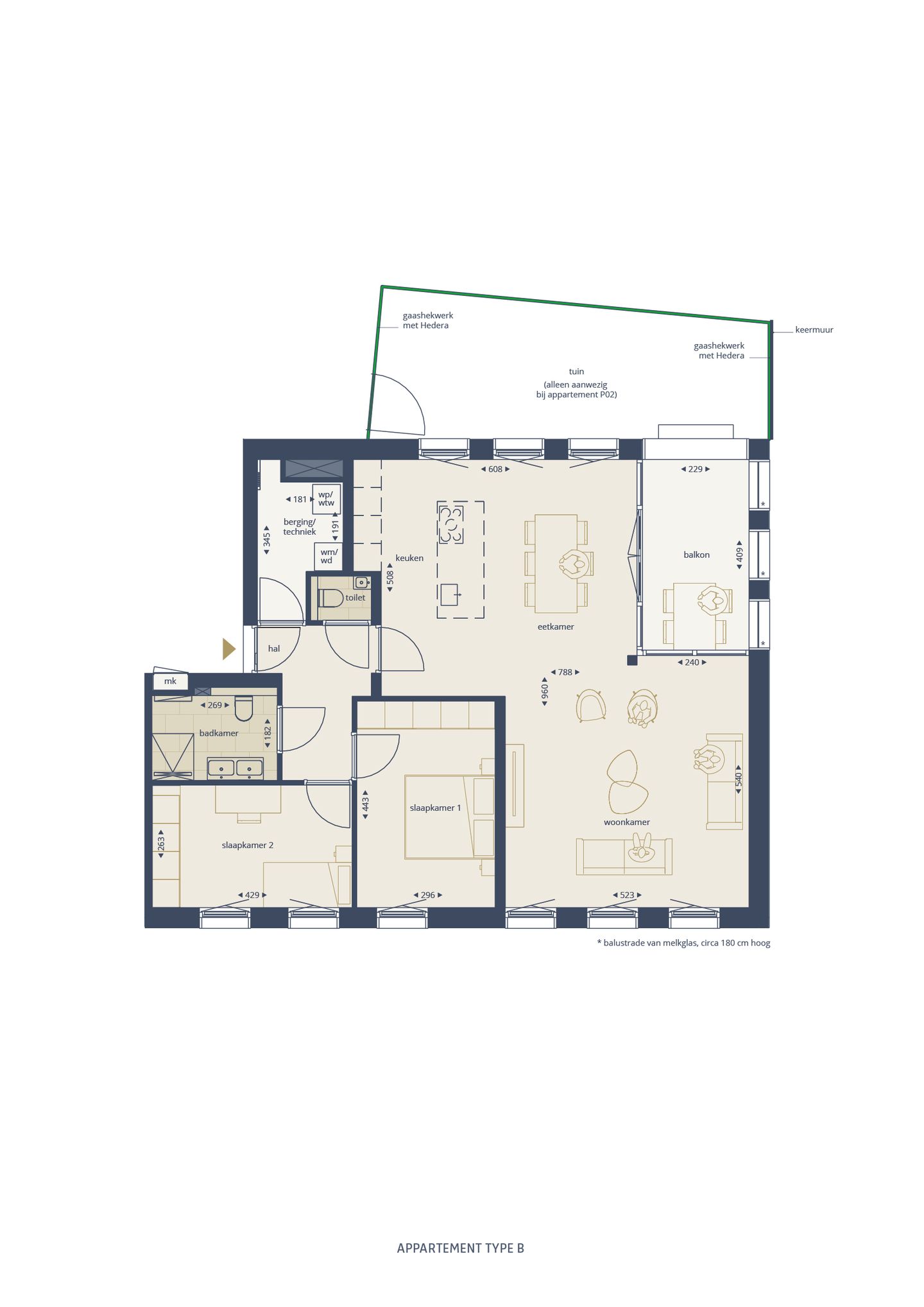 - Appartement nummer P02 beschikt over een eigen tuin