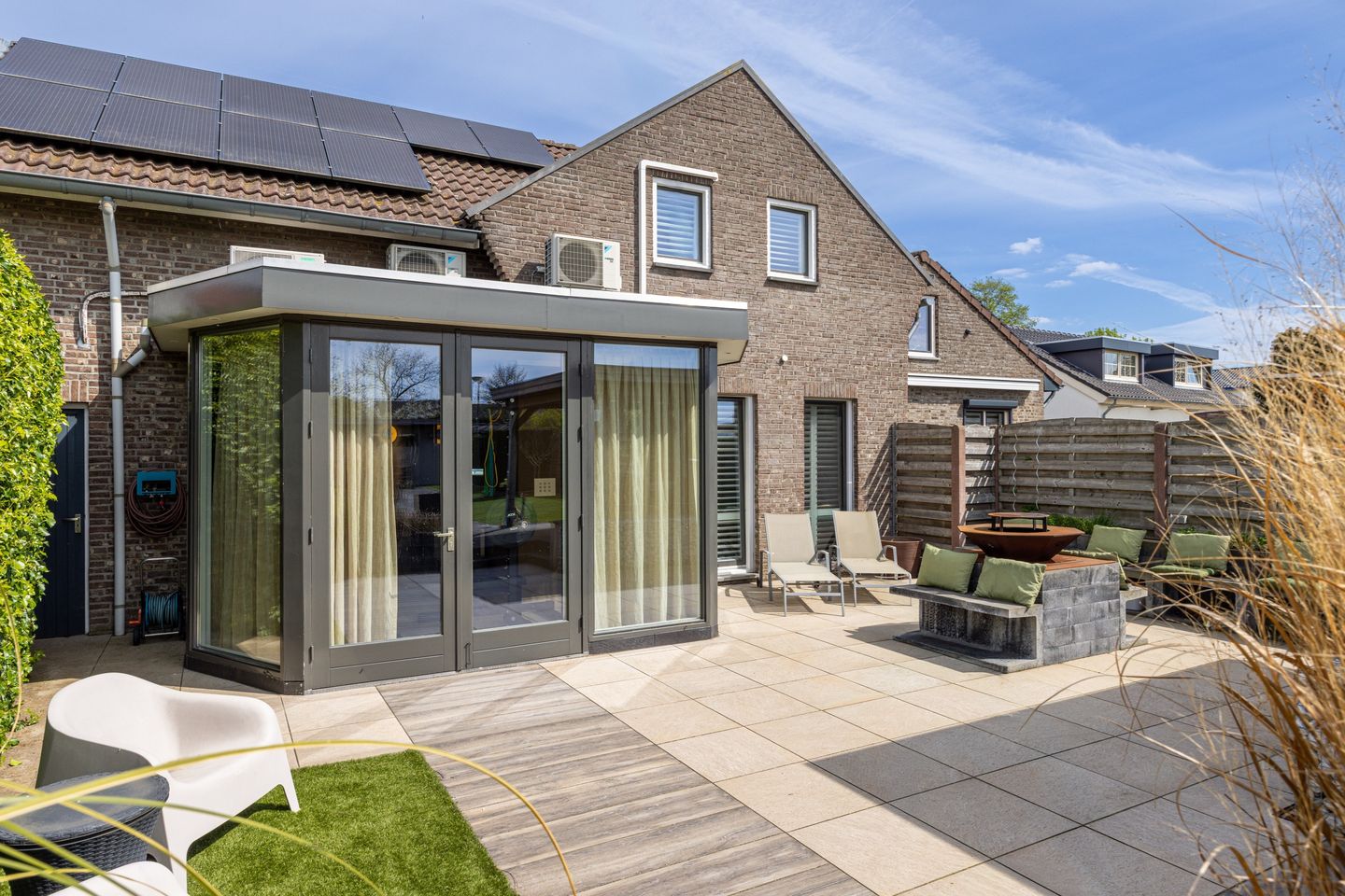 - Airconditioning, glasvezelkabel, rolluiken, schuifpui, en zonnepanelen
